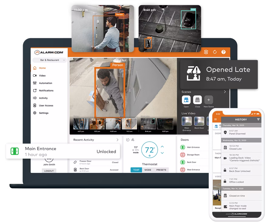 Arm or disarm your system remotely. Get real-time alerts via email or text. Manage lights, locks, thermostat, and garage door—all from one easy app. It’s security that fits your life.